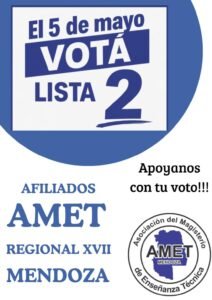 • Reunión sobre Educación Técnica y Capacitación para el Trabajo Se informa a la comunidad educativa que el Secretario General de AMET Regional XVII Mendoza Gustavo Stallocca , junto a los secretarios Raúl Tonelli y Carlos Britos, participaron de una reunión de trabajo con el Director de Educación Técnica y Trabajo de la Dirección General de Escuelas (DGE), Sr. Claudio Dagne. Durante el encuentro se abordaron distintos temas vinculados al presente y futuro de la educación técnica y la formación para el trabajo en la provincia de Mendoza. Temas tratados en la reunión 1. Escuela Técnica de 5 años Se analizóó el proceso de implementacióón del nuevo formato de escuela téécnica con duracióón de cinco añños, evaluando su desarrollo actual y las perspectivas de continuidad y fortalecimiento de esta modalidad educativa. 2. Reestructuración de los Centros de Capacitación para el Trabajo (C.C.T.) Se dialogó sobre las propuestas de reorganización de los C.C.T., considerando su rol en la formación profesional y su articulación con el sistema educativo. 3. Función de los docentes en los C.C.T. También se trató la importancia del rol docente en estos espacios de formación, destacando su participación en los procesos de enseñanza orientados a la capacitación laboral y el desarrollo de competencias para el trabajo. Conclusión Este tipo de encuentros permite fortalecer el diálogo institucional, analizar las políticas educativas vigentes y promover acciones que contribuyan al mejoramiento de la educación técnica y la formación para el trabajo, en beneficio de estudiantes, docentes y de toda la comunidad educativa. 6 marzo, 2026